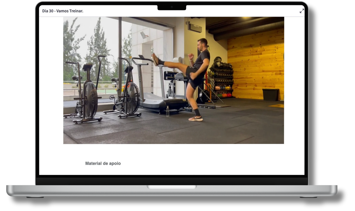 30 treinos gravados para que saibas exatamente o que fazer em cada dia.