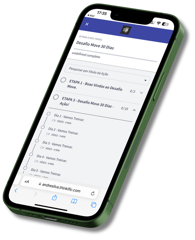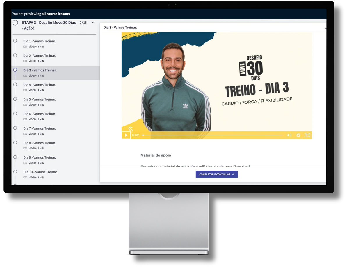 Após realizares a inscrição no desafio Move 30 Dias, receberás no teu email os acessos à Plataforma onde terá acesso a todo o conteúdo.