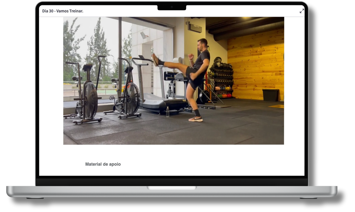 30 treinos gravados para que saibas exatamente o que fazer em cada dia.