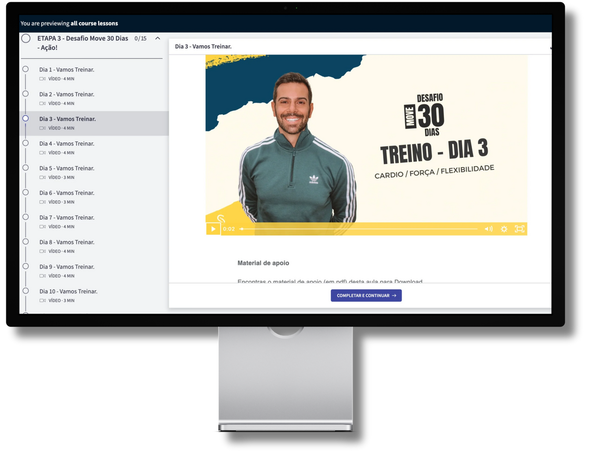 Após realizares a inscrição no desafio Move 30 Dias, receberás no teu email os acessos à Plataforma onde terá acesso a todo o conteúdo.